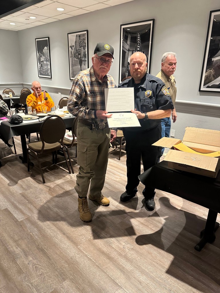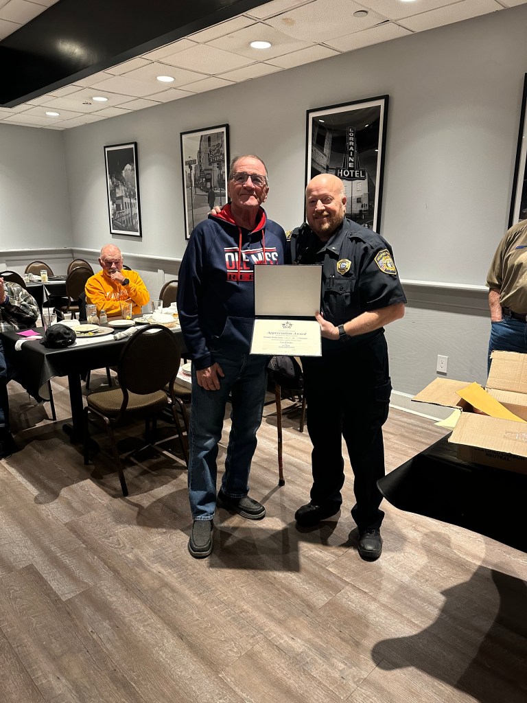 On Monday, February 10th, 2025 Brothers Eddie Sims and Tom Whitaker were both presented with certificates for their outstanding service to the F.O.P. and especially to Lodge #35. Eddie Sims just stepped down as Sergeant At Arms and Tom Whitaker just stepped down as the Lodge Chaplain. Both have been F.O.P. members for decades and have always given their all to assist any Members who needed aid or comfort. Their leadership and guidance will be missed in their spots on the Board but they are and will continue to be active in the F.O.P. We want to thank them for all of their hard work and dedication over the years!!!